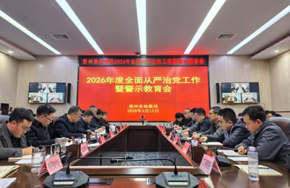 3月11日,贵州省地震局组织召开2026年全面从严治党工作暨警示教育会,传达贯彻上级关于全面从严治党的工作要求,总结部署局全面从严治党工作。局党组书记、局长周光全,党组成员、纪检组长赵永出席会议,党组成员、副局长梁开伦主持会议。